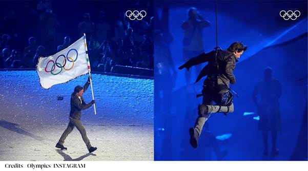 In an unforgettable moment, Tom Cruise made a surprise appearance, showcasing his iconic stunt work as he carried the Olympic flag. The Hollywood superstar demonstrated his incredible athleticism, leaving the audience in disbelief. With his ageless charm and daring stunts, Cruise reminded everyone of the excitement and energy that the Olympics bring.